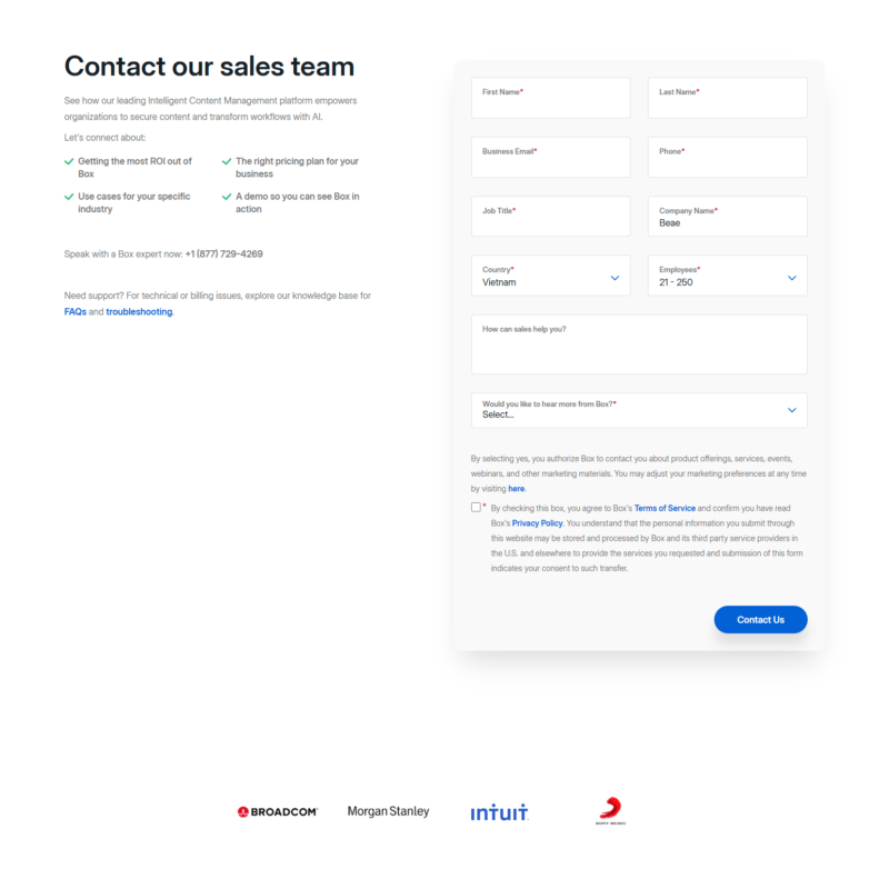 Contact Sales @Box