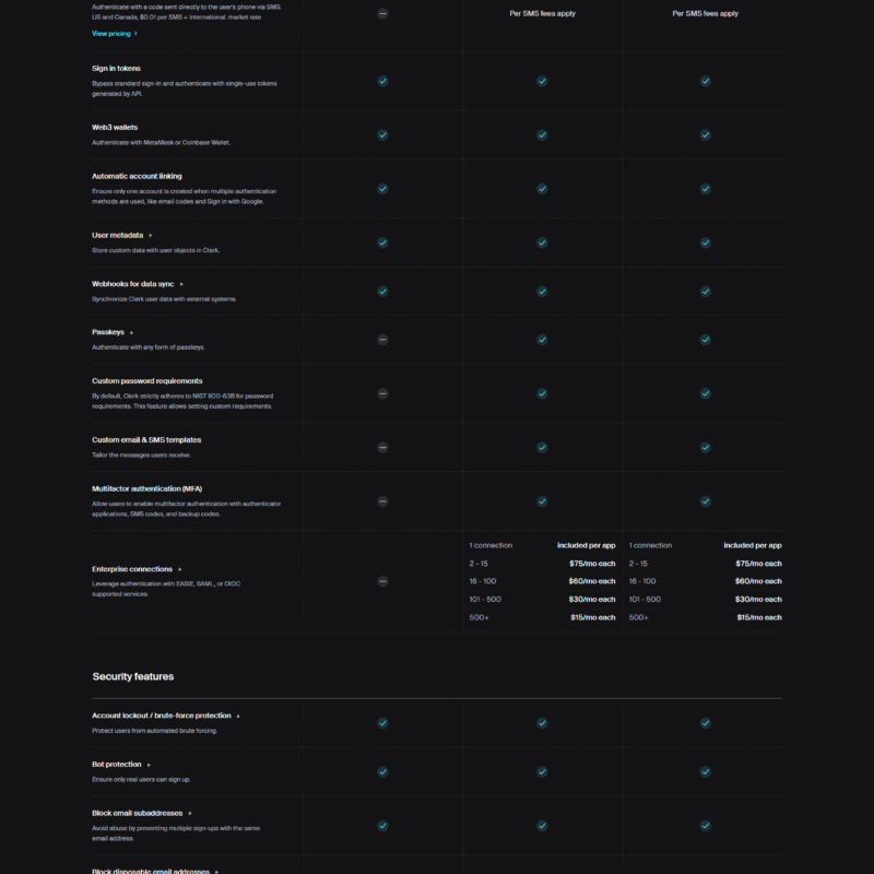 Pricing Page @Clerk