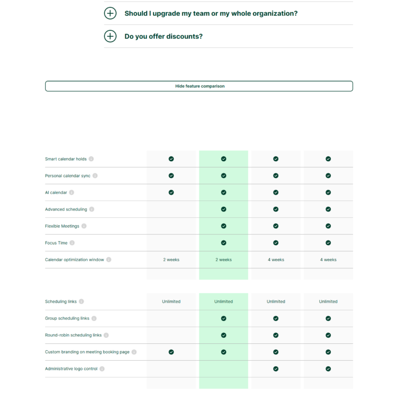 Pricing Page @Clockwise