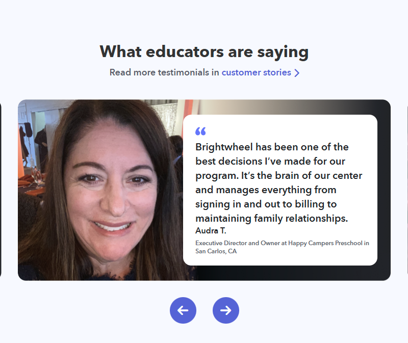 Testimonials Section @Brightwheel
