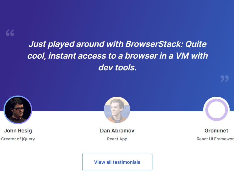 Testimonials Section @BrowserStack