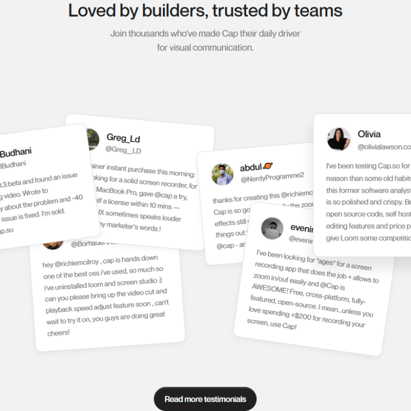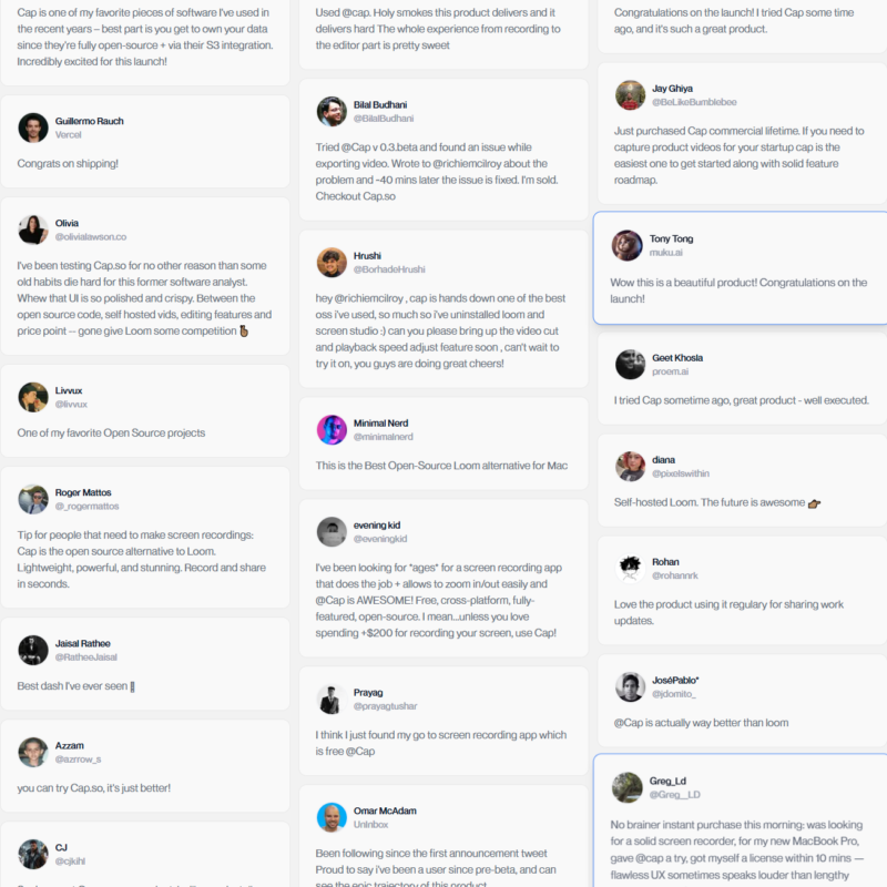Testimonials Section @Cap.so